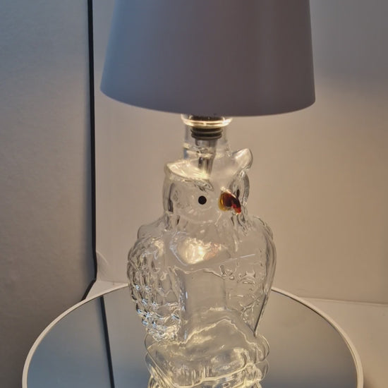 Glass owl bottle with rechargeable lampshade. 2 light settings. USB charging